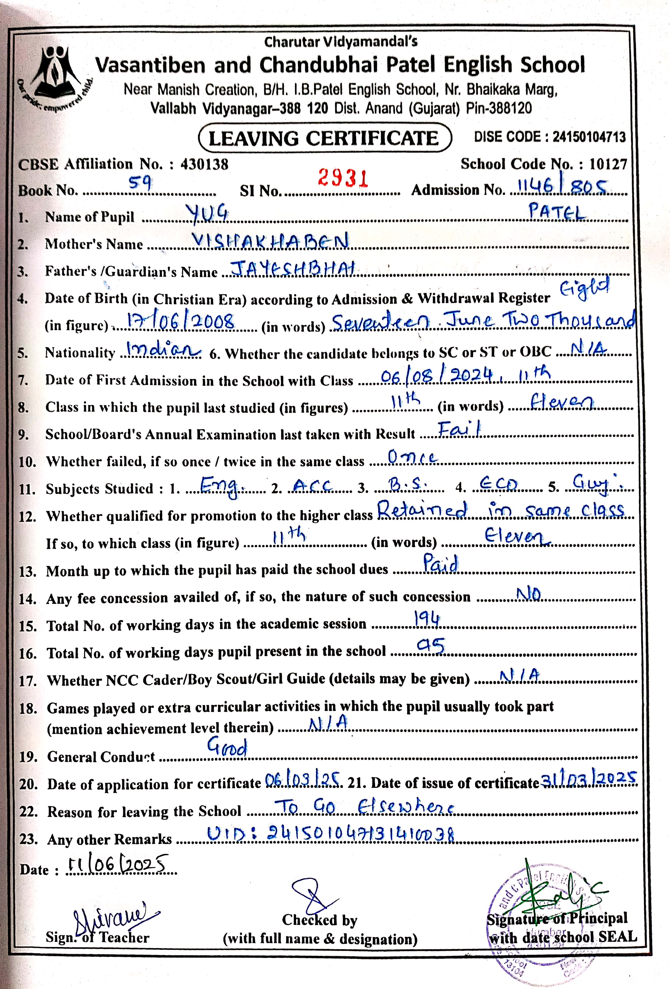 | 11. 1146-805 Yug Patel |