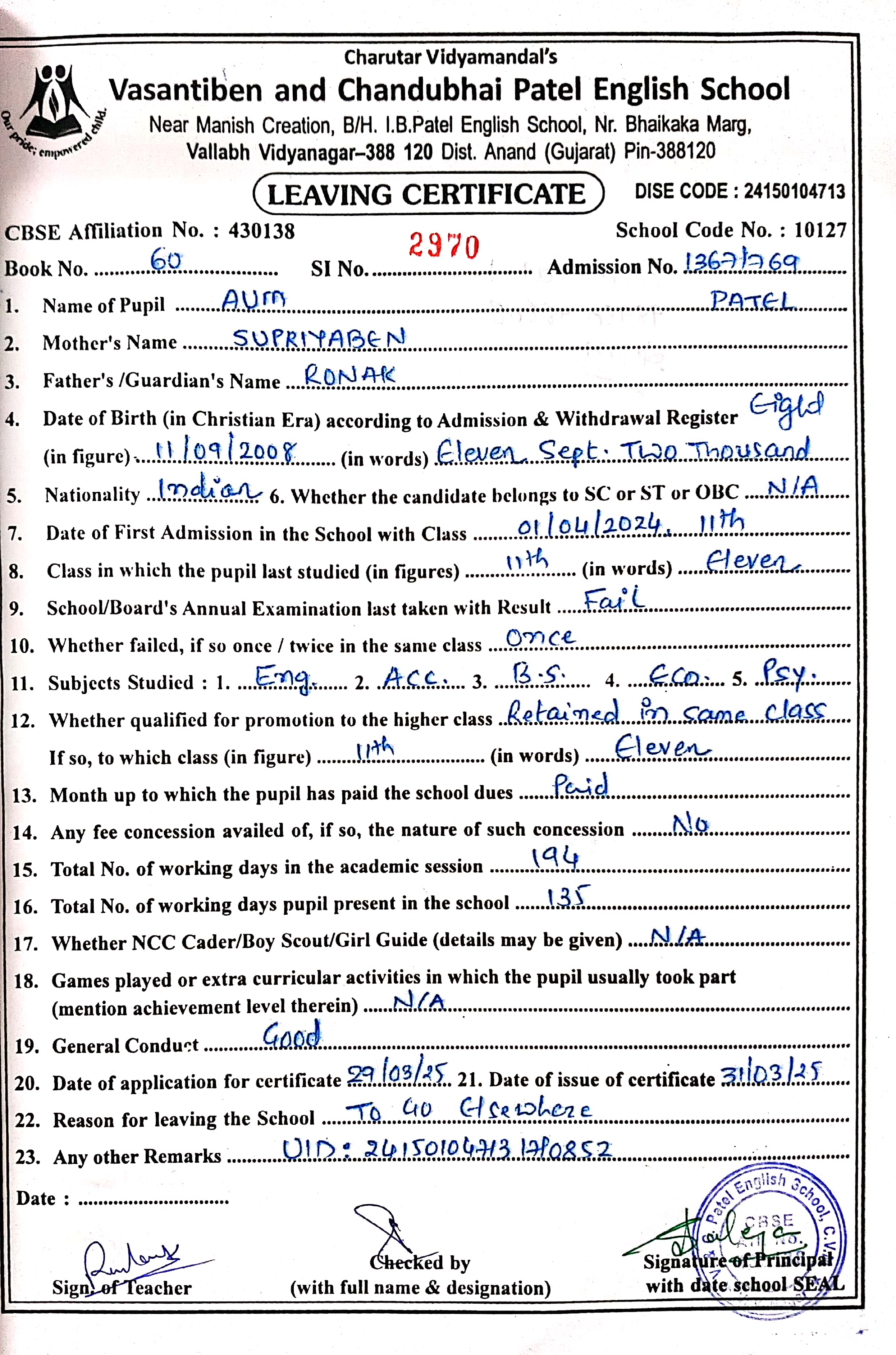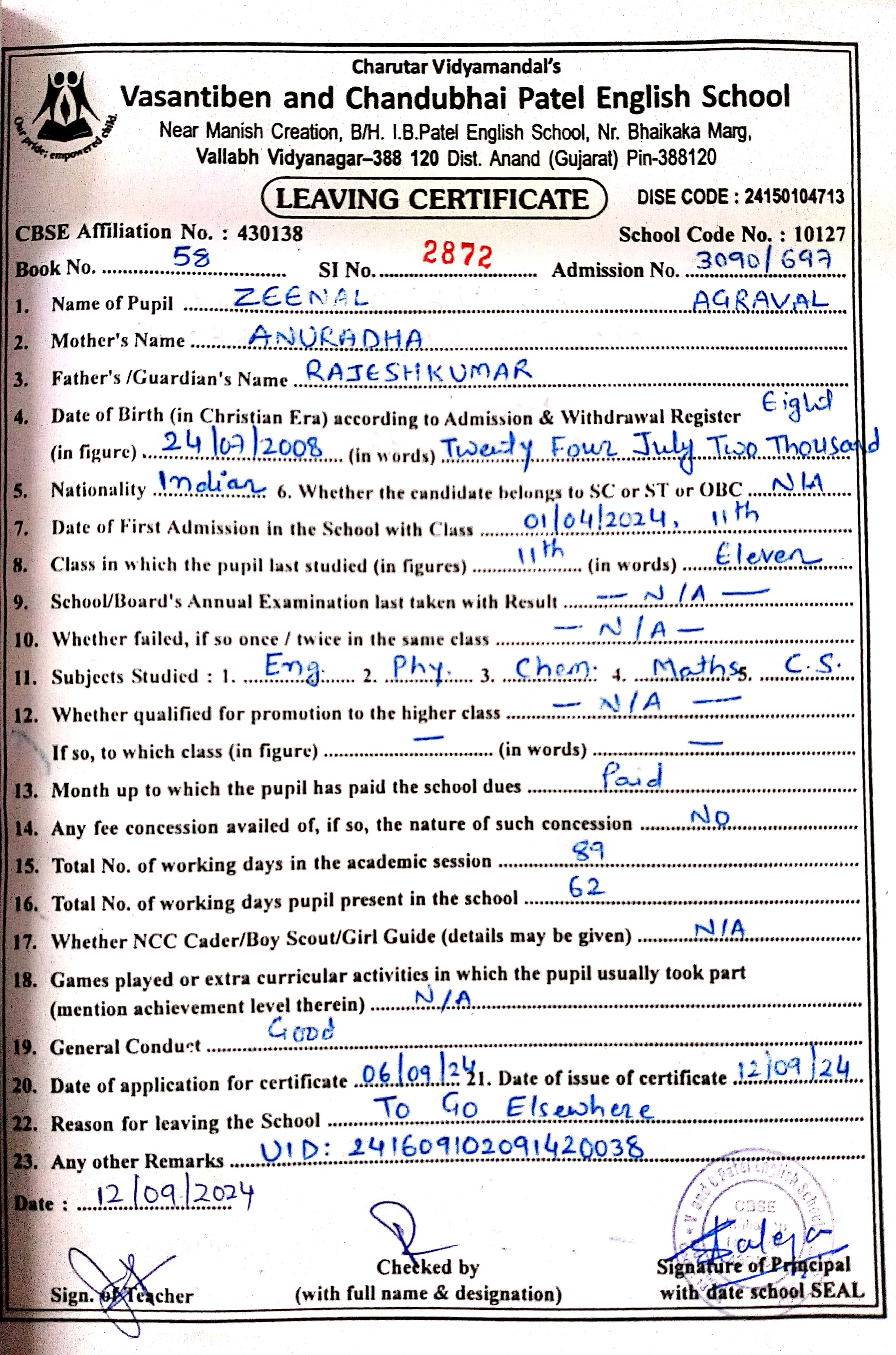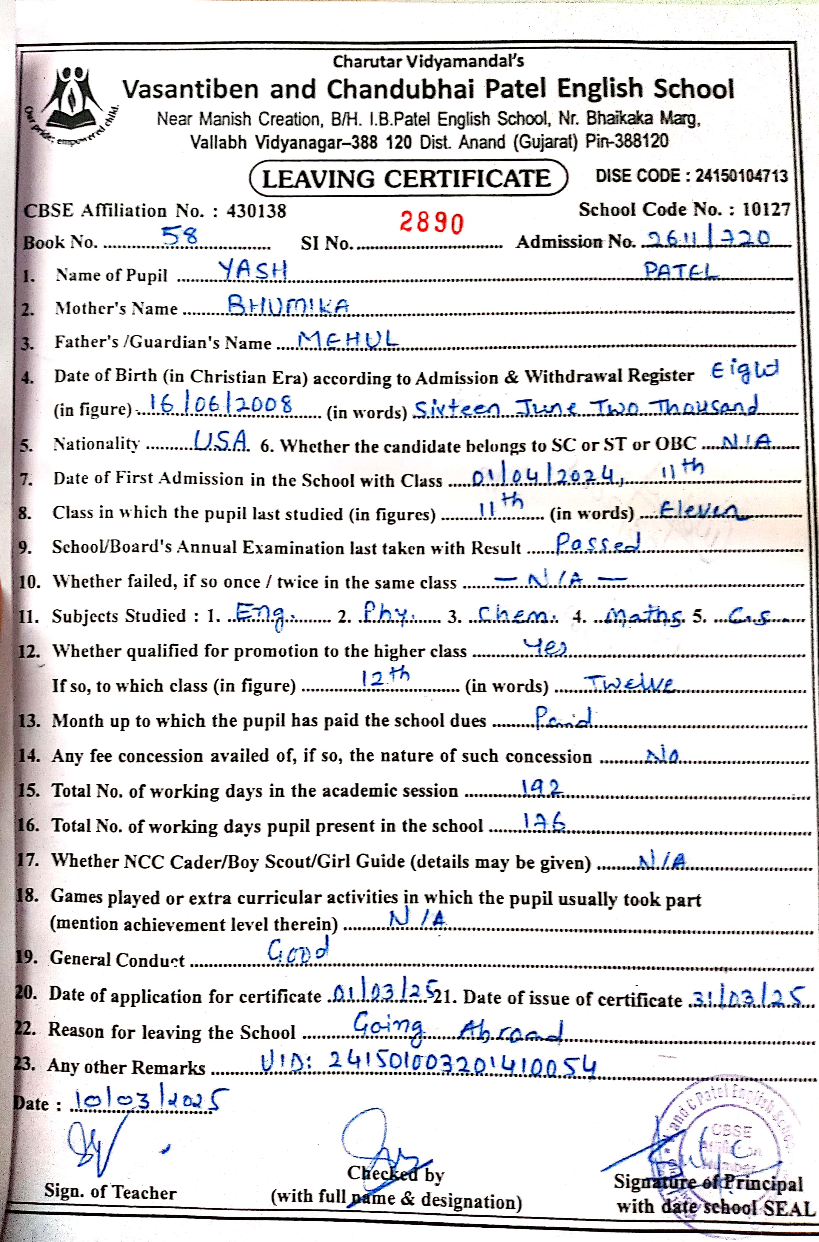 | 9. 1367-769 Aum Patel |
