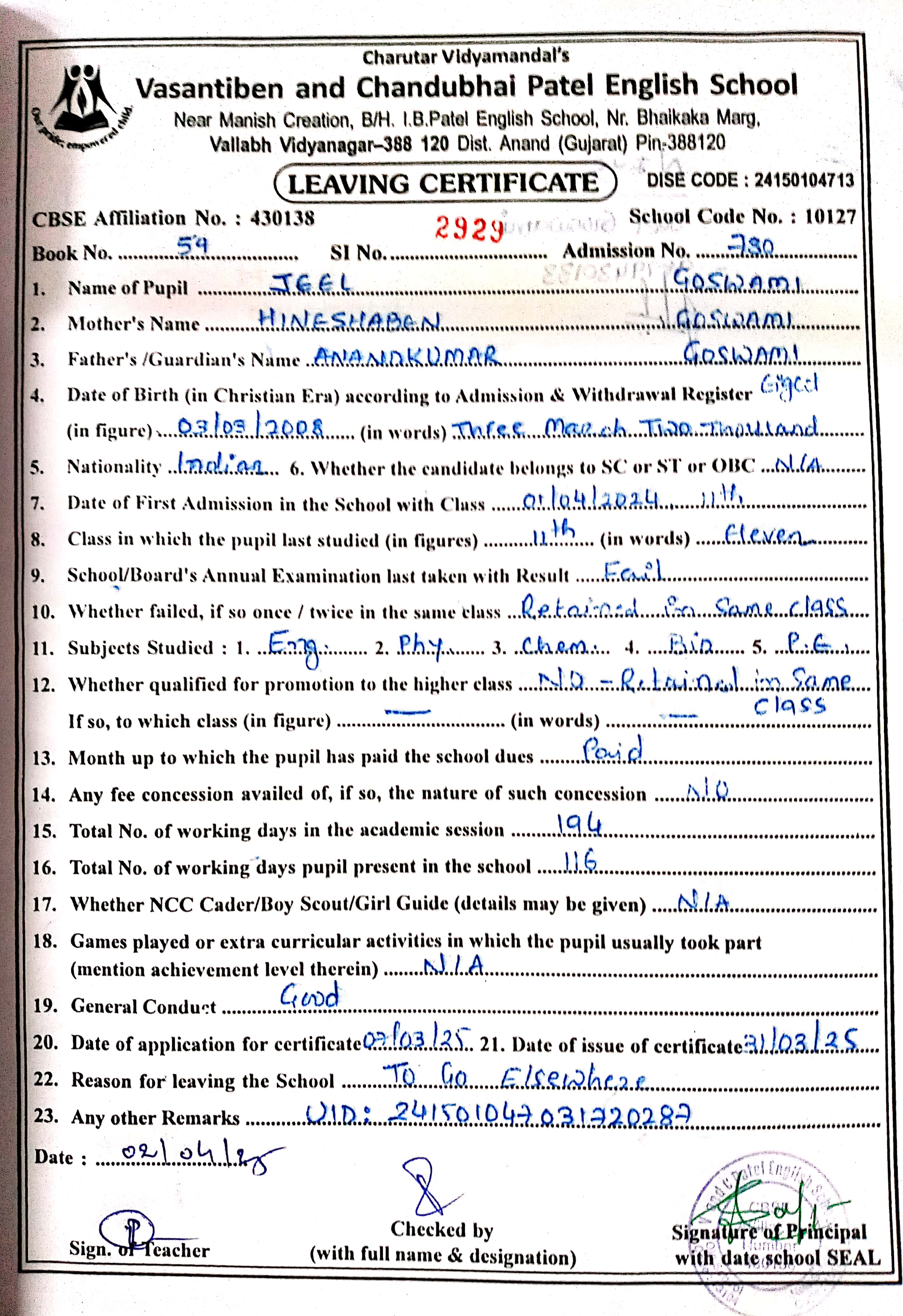 | 17. 780 Jeel Goswami |
