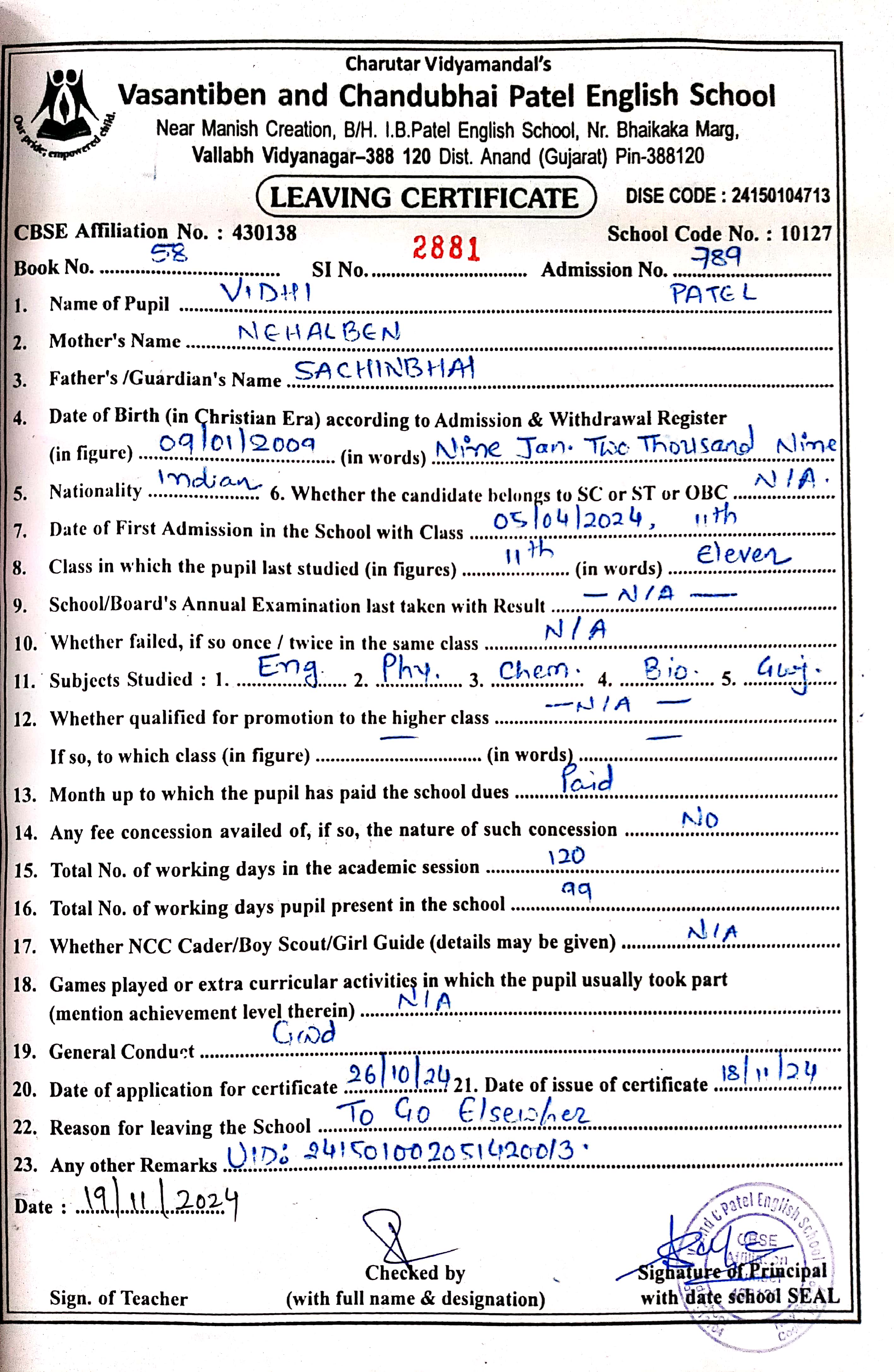 | 16. 789 Vidhi Patel |
