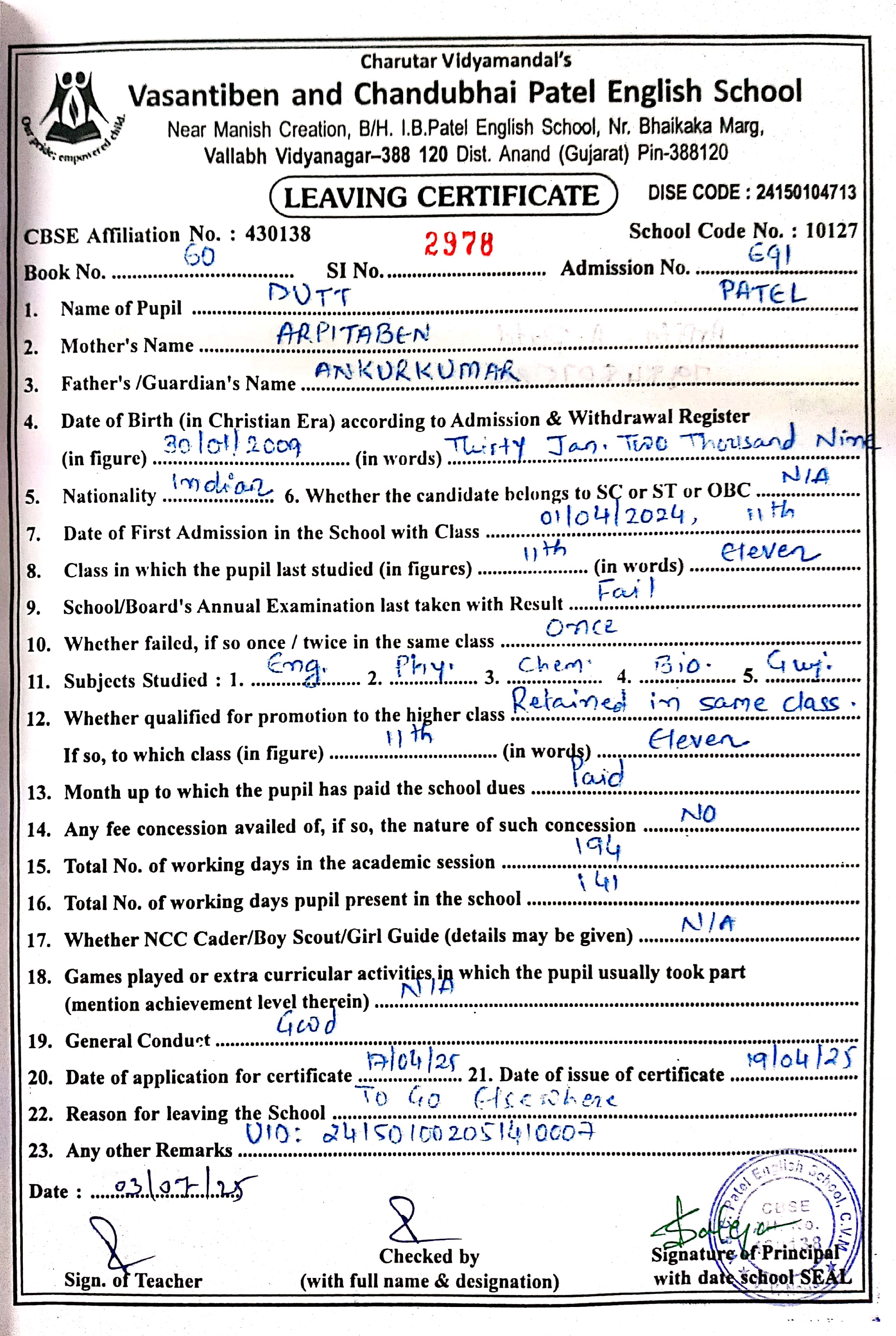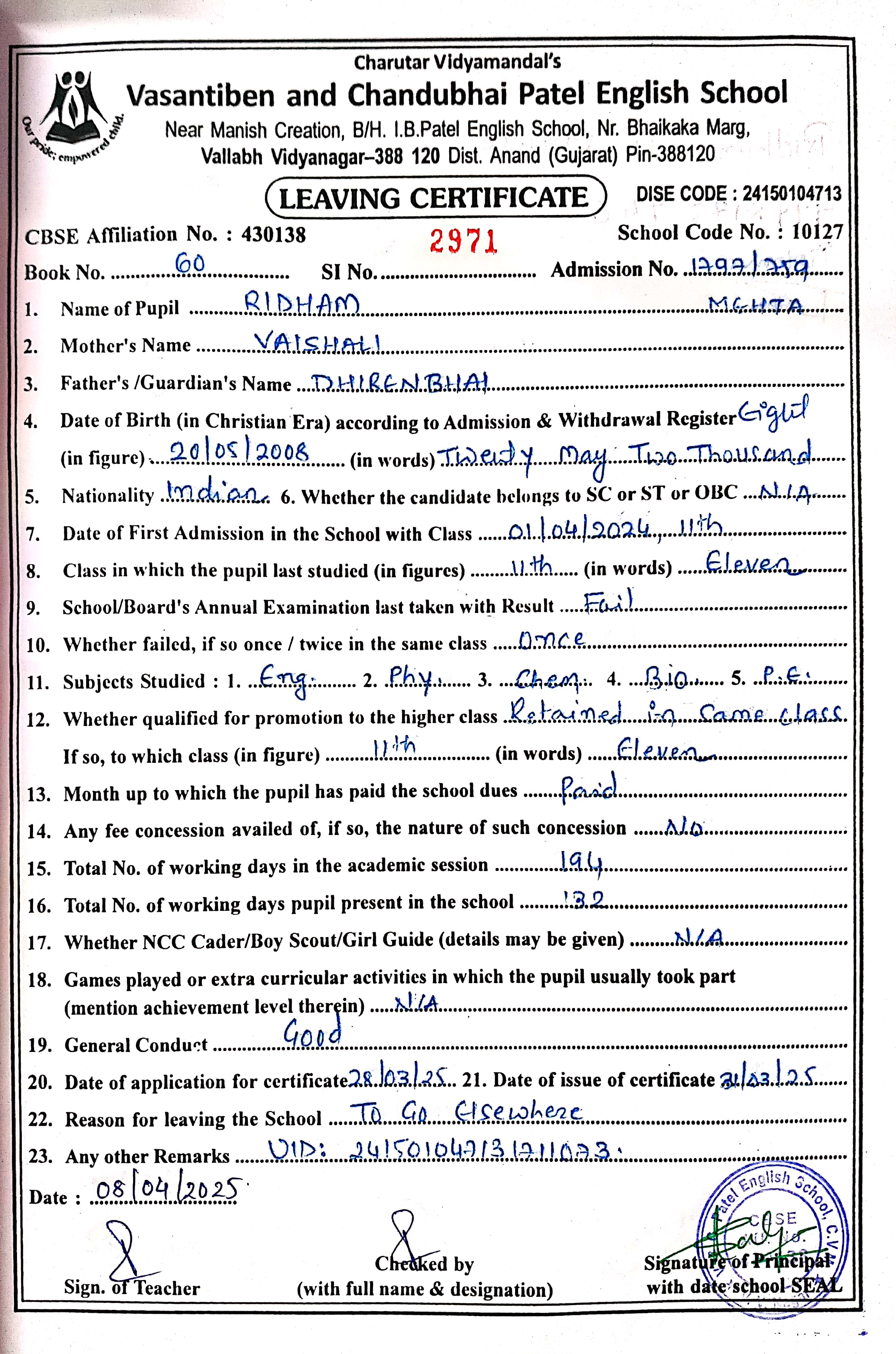 | 20. 1253 Dhruva Patel |