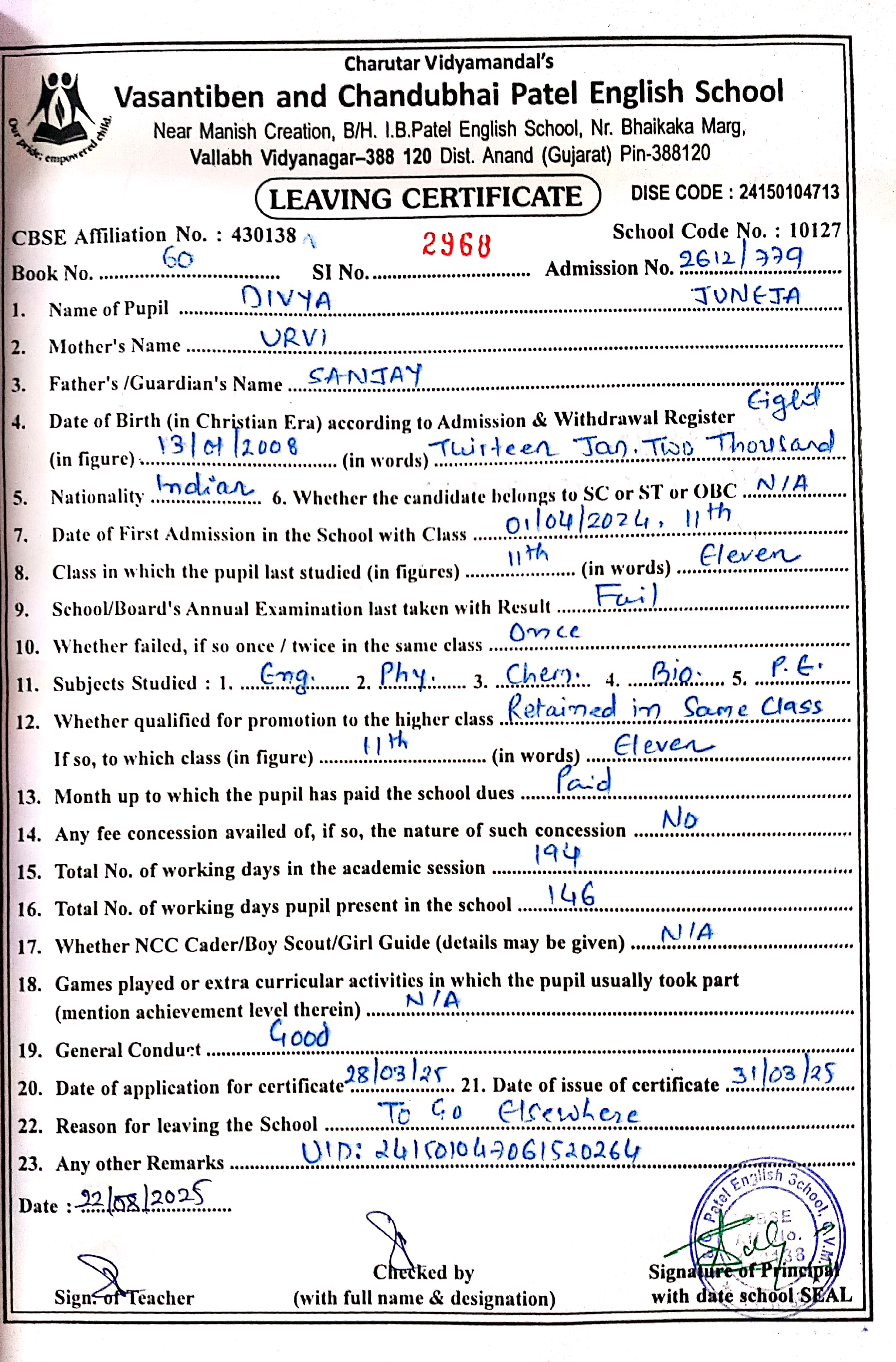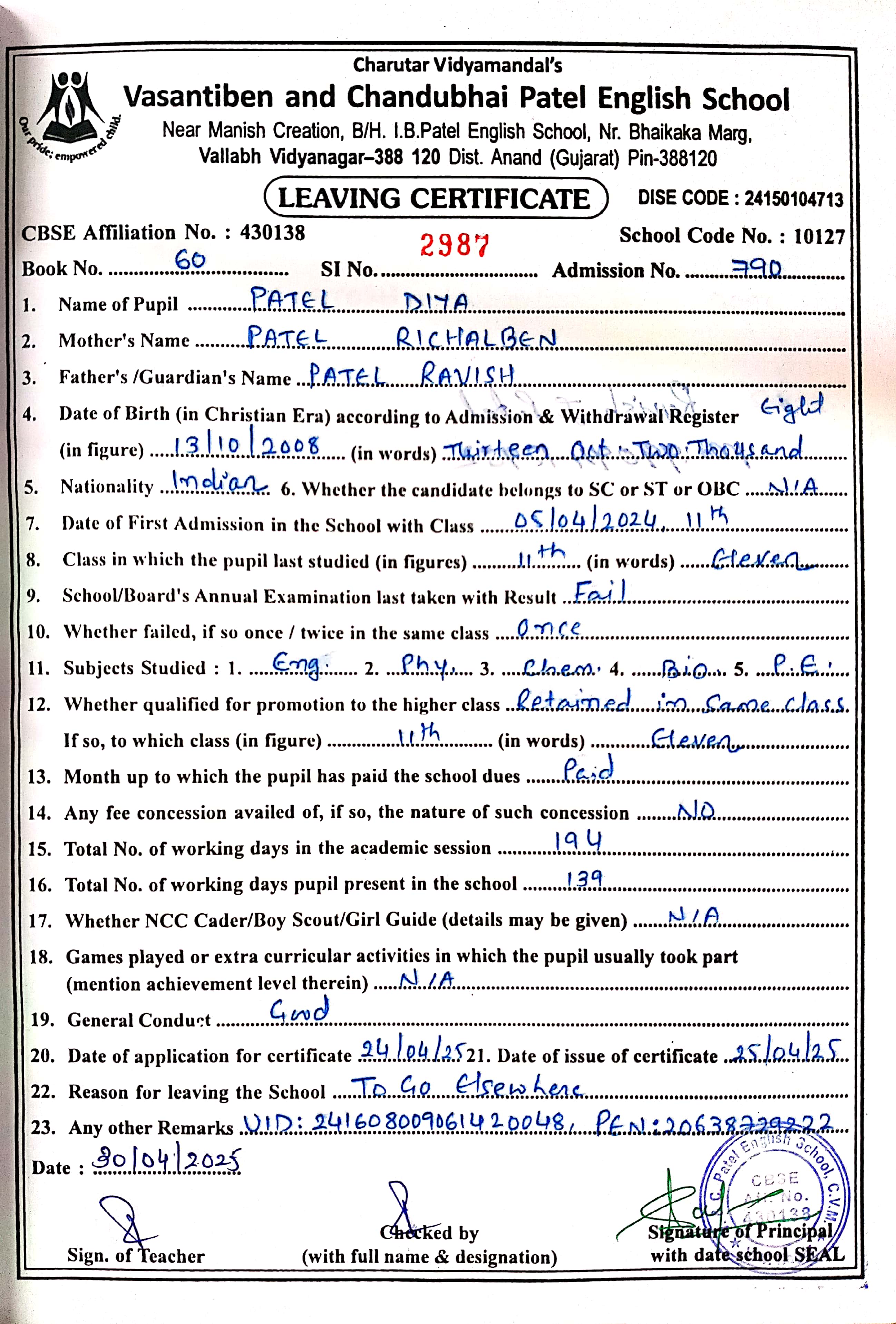 | 32. 2430 Huda Arifbhai Vahora |