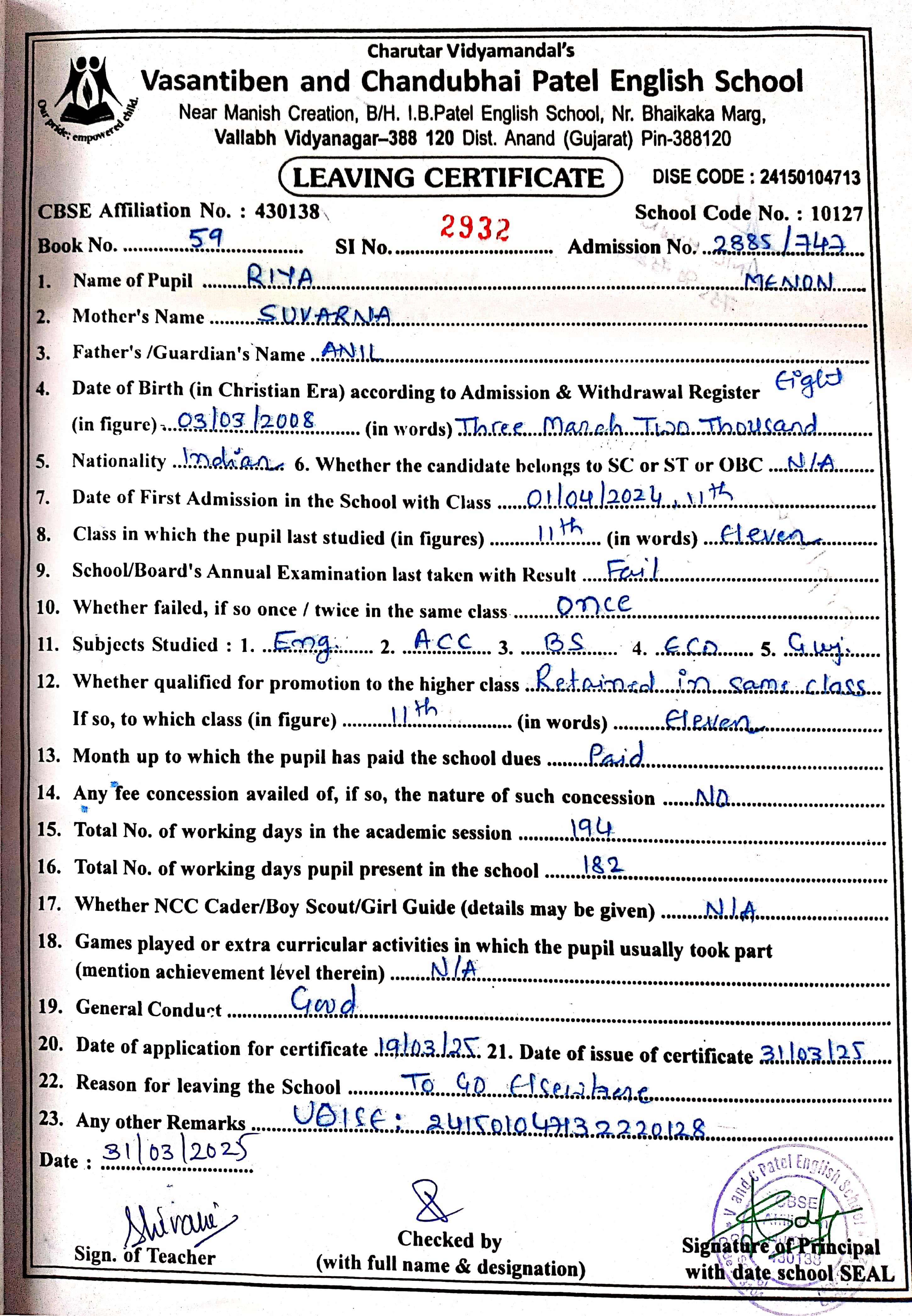 | 44. 3188 Ridhima Damachya |